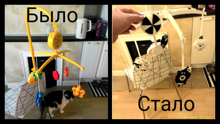 Я занялась чуток переделками, сделала нашему мурзику мобиль)
