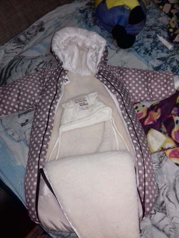 Нет комбинезон взят специально с прорезью для авто кресло, да и машина будет прогрета заранем так что кресло тоже будет теплое. Комбинезон не на овчине, синтепон плюс подклат из шести, я бы его одела бы в 10 одежек😂 муж говорит что будет жарко ему, первому сыну пол гардероба привезла врачи одели только тонкий костюм , две пеленки и одеялце и то мокрого привезли но был март . Может приготовить и то и то а там уже смотреть по ситуации😩