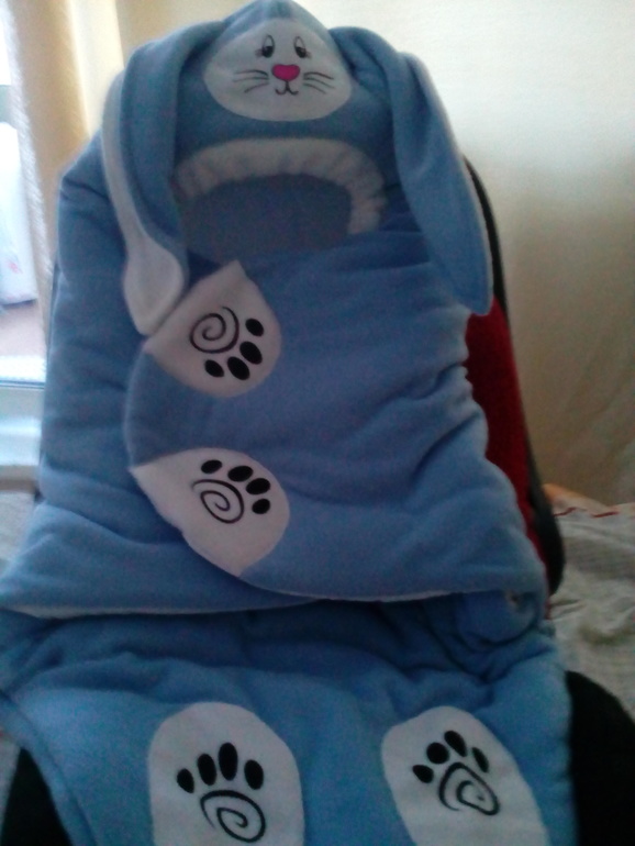 Наряд на выпискуУра, пришел наш конверт на выписку. Мне он очень понравилсЯ(хотя мама раскритиковала, что тонкий300гр холоф., что уши висят, что лента нужна и одеяло во внутрь итд)