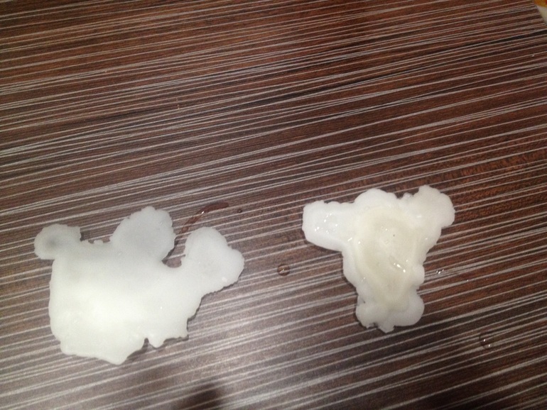 Мужа уговорила погадать на воске вот что получилось (моя справа, любимого слева)