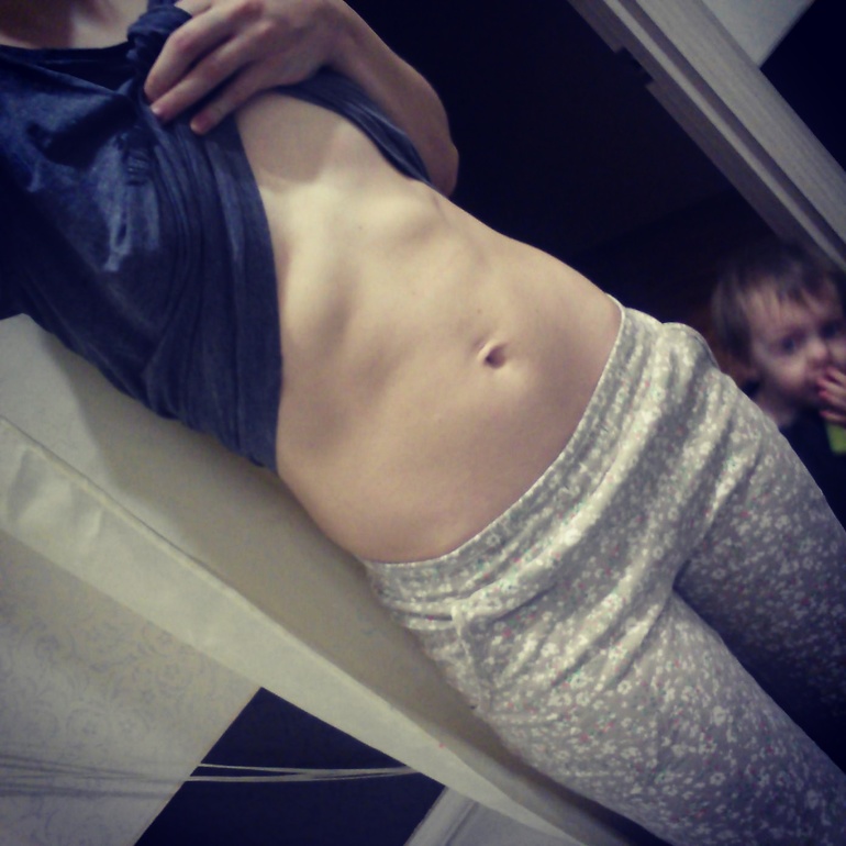 При пробуждении нереально большое пузо,после туалета плоский живот😂 к вечеру снова вываливается пуз. Но в основном его еще нет...