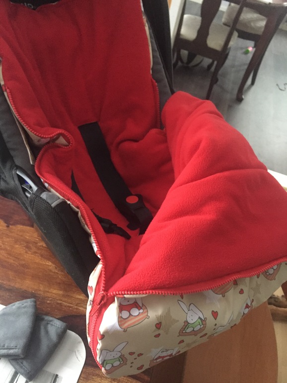 Особо и написать нечего:) сижу и все глухо как в танке:( живот потянуло в понедельник даже обрадовалось ну в итоге фигушки, треники:) шью, вяжу чтобы время убить как то:) вот в автокресло дошила наконец то , машинка моя совсем шить не хотела в несколько слоёв