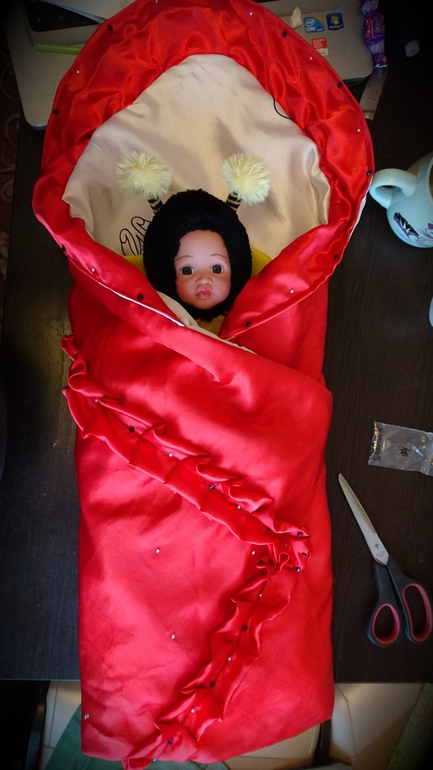 Наряд на выпискуРешила сшить в этот раз конвертик своей девчучшке. Остаётся погладить и вот не знаю - Ленту белую покупать или нет, а может резинку какую нибудь с бантом придумать, а может оставить все как есть, просто липучки пришить.