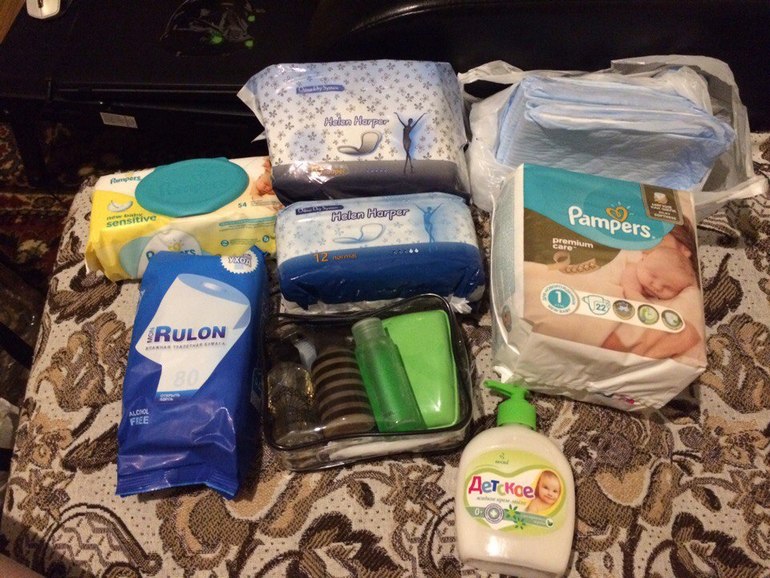 4. В пакете: одноразовая пеленка (на случай подтекания вод на дорогу), одноразовые трусы и пара прокладок (на случай, если роды будут ночью, пока передадут послеродовой пакет).