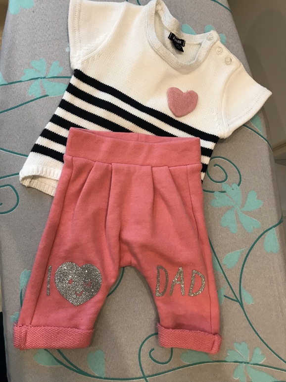 Симпатично, очень, но лучше в эту красоту через недельку хотя бы одевать. Всё таки новорожденному через голову не удобно одевать и кофточка задираться будет оставляя спинку голой. И штанишки пупочик будут раздражать и подгуз будет слазить. Так что надо слип. А лучше бодик с застежкой спереди по типу кимоно. Но может вам так удобно, не знаю...