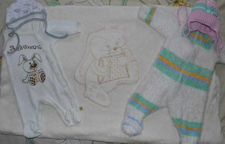 Слипы от 50 до 68. Пеленки: 8 тепленьких и 8 трикотажных.