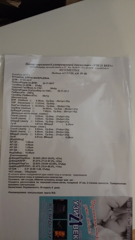 Завтра наш кружок замкнется) Сегодня ездили на узи посмотреть,как себя чувствует сынок,и вот наши новости)Плацента у нас еще не созрела ,щеки еще наедаем надежда родить пораньше отпала, недели две еще прохожу,весит уже 3467гр.,приблизительно сказала ,что рожу на 3800,ну вроде не совсем большой уверена,что справлюсь😉я буду очень стараться,сынок я тебе это обещаю☺что еще из хорошего мы без бус это очень радует,воды нормально,все соответствует сроку