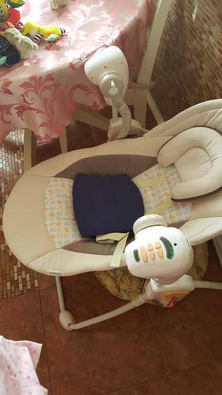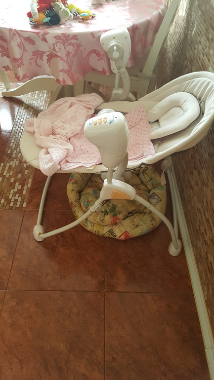 у нас электр.качели ).они и с музыкой.на них еще висит дуга с игрушками. развлекается доча , а я могу помыть посуду и поесть