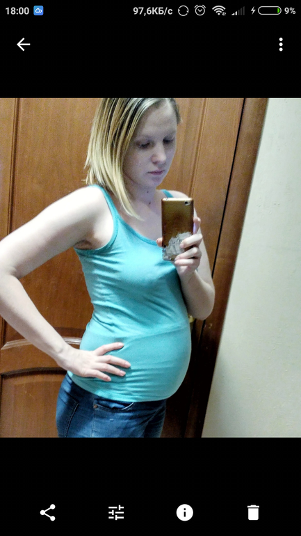В первую беременность по задней стенке живот,да и я сама намного больше была чем сейчас(прикрепление по передней).