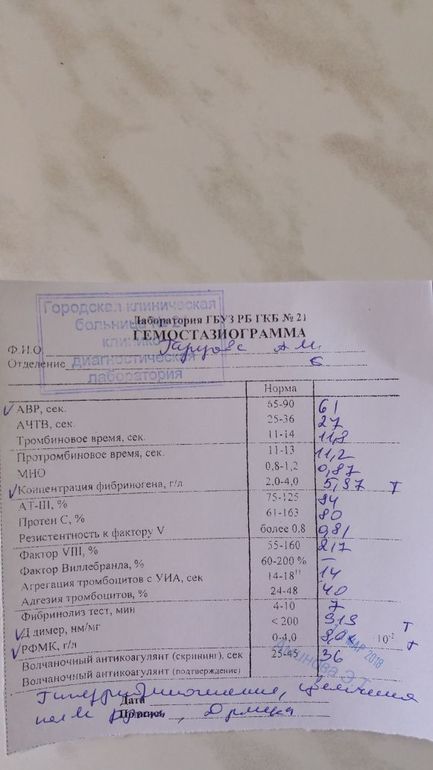 ГемостазДевочки сдала я сегодня тромбодинамику и гемостазиограмму. Сейчас идет 23 неделя. Опять по гемостазу резкий скачок ддимера за 2 недели вырос на 400... последние 2 недели появилась гнойная слизь из носа... может ли он спровоцировать? Промываю нос но все бестолку. И пью теплое питье и проветриваю комнату. Лор врачи ничего не назначают. Поеду в другой город к другому врачу... скорее всего уже нужны антибиотики. Всю берем на клексане в основном на 0.2. Колола клексан 0.4. Когда был скачок ддимера так же. Показатели снизились хорошо. Врач сказала перейти опять на 0.2. И вот опять скачок.