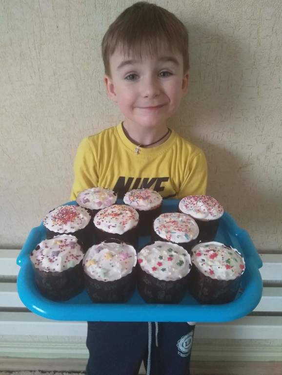 Верхушки не все остались целы))). Украшал сынок. А вы печёте куличи?