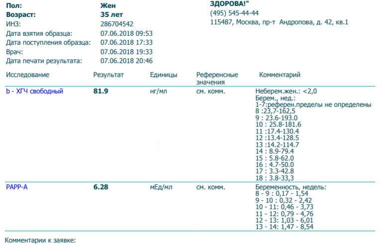 У вас в норме значения биохимического скриннинга, нужно смотреть не на абсолютные значения в листке инвитро, а на скорректрированный МоМ в листке расчета рисков. У вас все хорошо