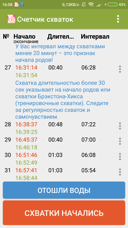Я ждала до 3х минут и приехала в роддом, через 2 часа родила. Схваткосчиталка писала : пора ехать в роддом, срочно в роддом