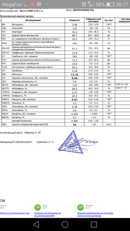 Анализы, скринингиПосмотрите на сколько всё плохо. Напрягает соэ. В 28 недель она была 26,только в другой лаборатории сдавала. Не болела,только ринит с 7 недель беременности. И свечки от молочницы сейчас использую.