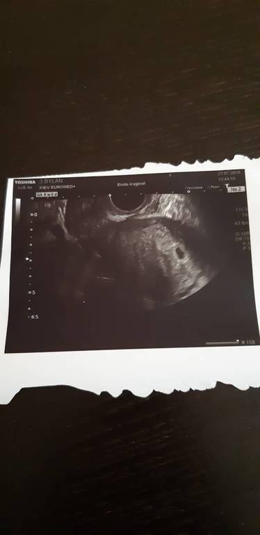 УЗИ, КТГ, доплерВобщем вся такая веселая прискакала я на узд. Начинается осмотр, на против меня висит плазма, чтоб я видила весь процес.Смотрит она смотрит , ну конечно смотрю и я и понимаю что я ничего не вижу. Так она смотрела мин 2 даже переспросила по поводу теста у меня. Я уже думала все, это конец. И тут что-то мелькнуло...и.... есть😊 есть пя в матке.О Боже, я была на седьмом небе от счастья 😆ПЯ 6.7ммКтр 3.5 мм живой.Сердцебиение есть но плохо прослушивается из-за маленького срока.Б соответствует 6 неделям😆ШМ 42мВобщем сказала через две недели повторно на узд, будем слушать сердечко 😊Я довольна как слон😆А вот наша первая фотография 😃Моя бусинка, мое малюсенькое счастье)