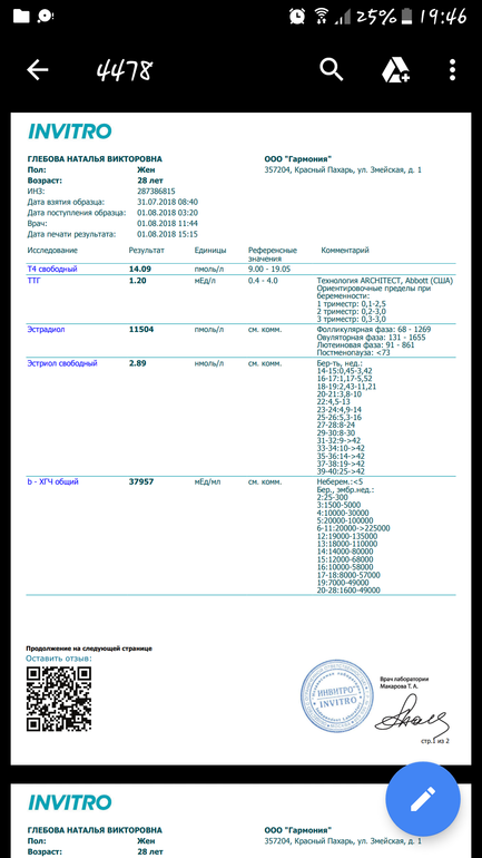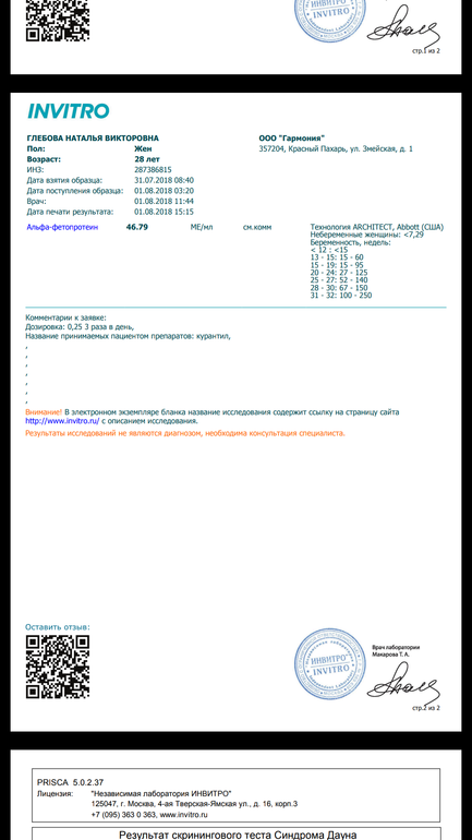По-любому буду пересдавать. К врачу 14 августа, наверно еще раз сдам до этого времени, чтоб к ней с двумя результатами прийти.