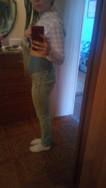 4. У меня дурная привычка подбирать гардероб строго по фигуре, и очень я люблю когда джинсы на талии сидят идеально... Ну короче, не влезаю я в свои джинсы больше. Так вот вчера зашла я в магазин с одеждой для Б... И увидела джинсы за 155р!!!! Таких цен ж не бывает!!! Естественно взяла. Животика почти нет еще, а то что есть по большей части газы. Но где я потом найду джинсы за 155 рублей?????