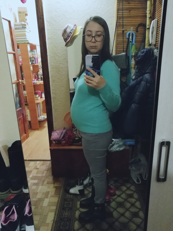 Пузик мой растёт, как по мне, так он большой. Усиленно обмазываюсь кремом от растяжек, вдруг поможет😅 с первой дочерью не было растяжек на животе, только на одной груди парочка и то незаметно. Но и вес там был 53 кг к 32 неделе, потом скинула до 47 кг, а потом набрала с новым мужем до 60 кг😭 сейчас 61,1 по утрам. Взяла с мужа обещание оплачивать мне фитнес после родов.