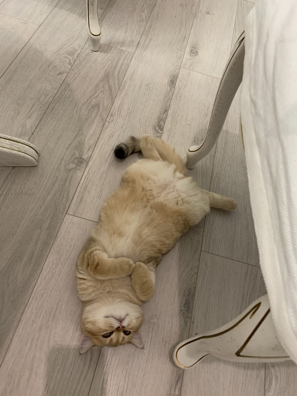 Кот пока живет у бывшего мужа. Он больше чем моя младшая дочка, она ж недоношенная ещё 🤦🏾♀️ И пытается прыгнуть на неё. Вот так 😭
