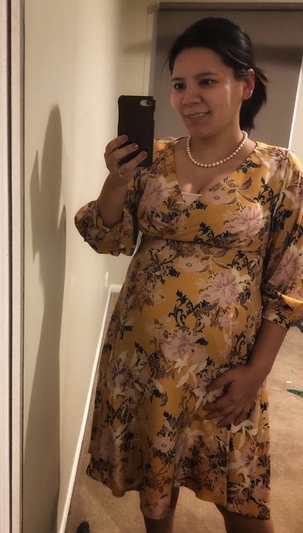Платье заказывала онлайн, в британском магазине Tiffany Rose. Немного я была разочарована покупкой - вырез декольте был какой-то уж больно откровенный, пришлось надевать под платье лифчик-топ. Ну и расцветка платья - понравилась на фото, а когда примерила, то как будто из бабушкин штор я его сшила 🙄 муж-вредина сказал что я «милая старучка» (именно старуЧка) в этом платье (правда, он считает полоски писком моды.. я в принципе не против полосок, но беременная в полосатом - это немного банально 🙈 )