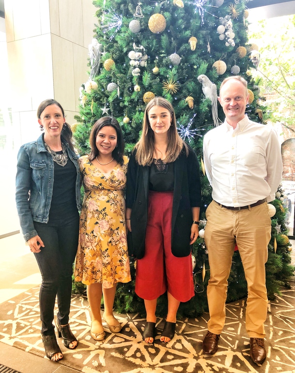 А здесь - с половиной нашего небольшого отдела в лобби офиса (да, я коротыш 😬😬 без каблуков теперь это ещё больше заметно)