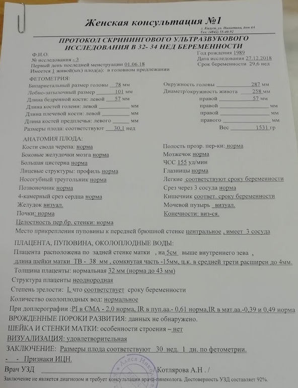 Не буду утомлять измерениями скрининга, а лучше приложу результаты во вложении. Всё у нас хорошо. И вес 1500 с копейками уже. Это не много? Или пора прекращать есть сладкие фрукты?