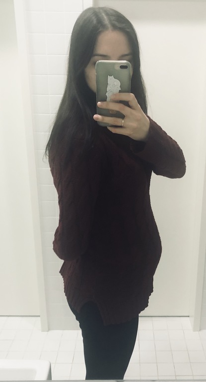 Пуз на память. Получилась какая-то нелепая культя вместо левой руки) это я сзади стягиваю свитер, чтоб было видно.