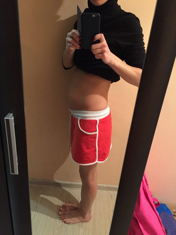 А у меня как то аппетита нет, анемия ещё замучила, давление низкое. А вы объем живота лёжа мериете? Я что то стоя 91 намерили...
