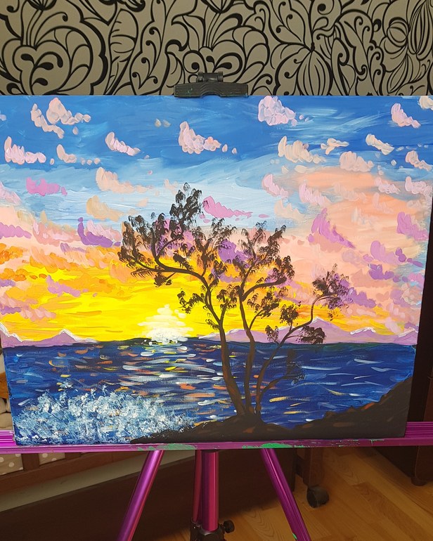 Самочувствие нормальное для очень беременной тети🤣🤣🤣Иногда тянет поясницу и животик,но не долго.Хожу в раскорячку,аки пингвин.Из дома редко выхожу,скользко,да и страхово..Сижу дома и Рисую,Хотя усидеть на месте долго не могу.Вот такую Картину Свекрови на 8 Марта накалякала