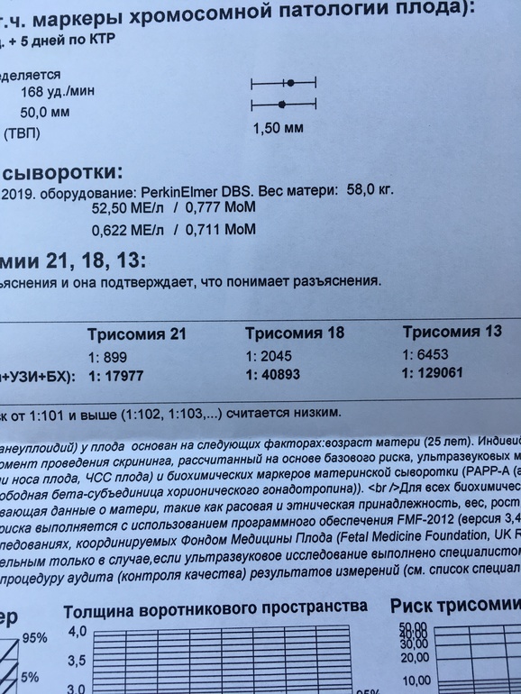 Не хочу писать большой текст. Вчера ездила к генетикам на узи, сегодня получила анализы крови. Фото рисков приложу внизу, ктр 50 мм, твп 1,5, нос 2,3. Чел симпатичный, пол попросила не говорить, но его и не рассмотрят пока, я думаю, срок меньше 12. Поеду ещё на узи в Кулакова через недельку, ну и к врачу там на приём.Начинается самое интересное теперь, ждём, что может вылезти на этот раз... в прошлую б первый скрининг был ещё лучше) итог так себе))