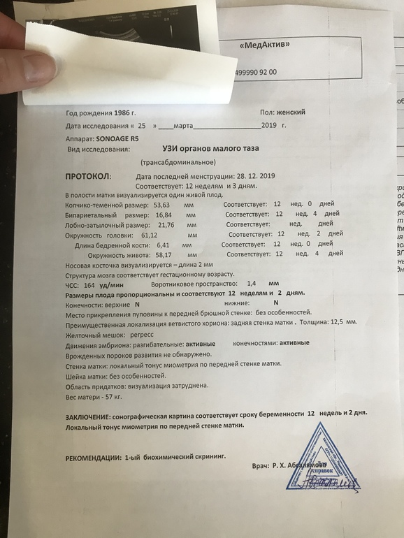 Мы мы мы.... Мы тоже сегодня были на 1 скрининг. По узи все хорошо. Ктр 63,5 мм а вес 55 гр. 🙃🙃🙃 Такой малюська 😊😊😊😊 срок поставили 12+6. Пдр 01.10.19 как и по моим подсчётам. Чувствую себя отлично! Но без капли дёгтя никуда - хорион перекрывает зев на 1,5 см, но об этом я ещё на прошлом узи узнала в 11 недель.