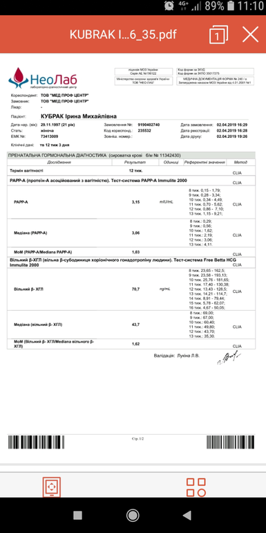 Прислала лабаратории результаты анализов крови по скринингу, посмотрите