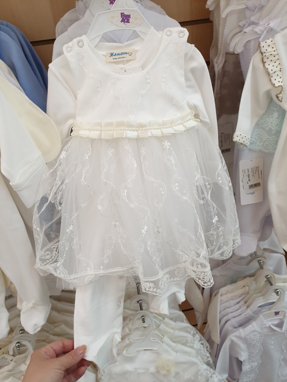 Наряд на выпискуЗашла сегодня в детский магазин, и нашла бодик с платьецем. Прям мимимишный. И ручки можно прикрыть, в место царапок. К нему плед-одеяло вязанное. Потом в машине раскутаем, положу в люльку и прикрою пледом, и пинетки у нас плотненькие. Вот думаю, вниз под бодик надо еще что то одевать, конечно еще от погоды будет зависеть. Или сверху купить кофточку.