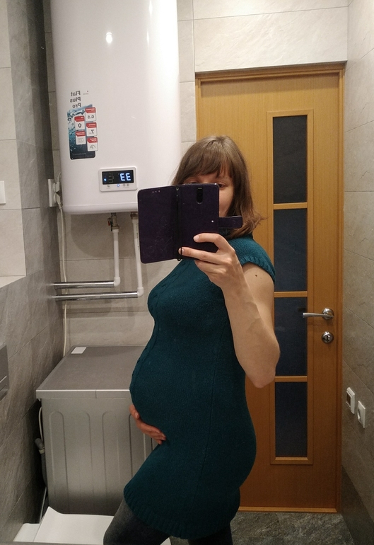 Ну, и мое скромное пузо с разных сторон. Говорят, что живот низкий, действительно так заметно? Лялька же умудряется пинаться и внизу под лобковой костью и в ребра. Весьма болезненно.