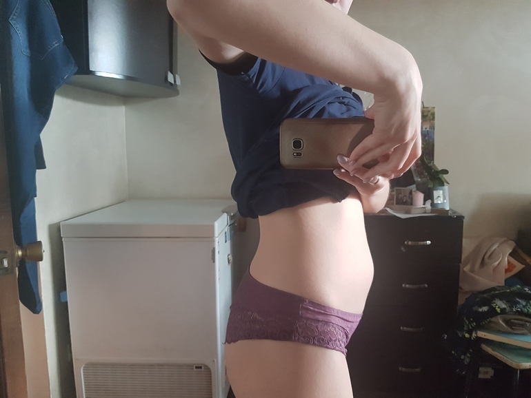 Сейчас 30я, ну все так и осталось, живот небольшой, прибавка тоже. В районе 5кг, при том, что я от токсикоза 5,5 потеряла. Скоро верну добеременный вес.