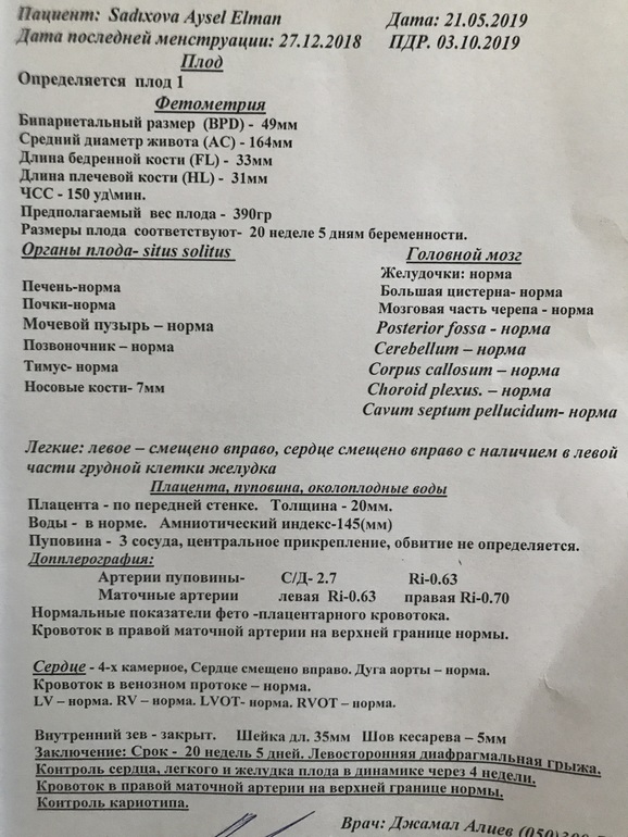 20н5д все клево все супер все развито как надо. Вес 390 гр.. но обнаружена грыжа. Значить в диафрагме есть дырочка через которую проходит пищевод так вот эта дырочка большая у малыша и желудок переместился наверх сместив левое легкое и сердце в право. Короче сказали наблюдать каждые 4 нед по узи и по любому оперировать сразу после рождения.