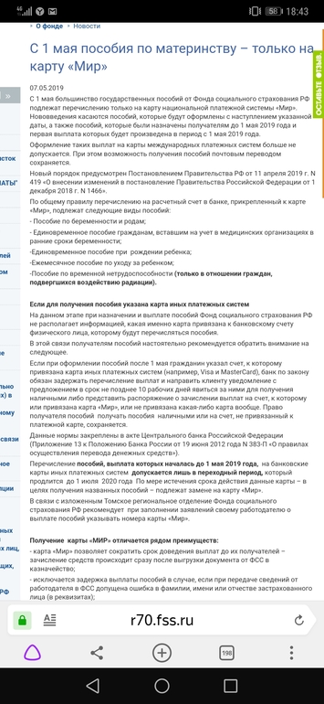 Во время больничного позвонили с работы и сказали что фсс перечисляет деньги только на карту мир и то что они мне ее оформили от меня остается только принести или продиктовать по телефону номер карты. Это был конец июля