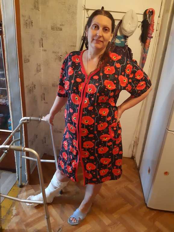 Вынуждена сейчас больше лежать, любые кратковременные передвижения вызывают безумную усталость, я обливаюсь десятью потами от напряжения. Прыгать приходится вот на таких ходунках (костыли тоже есть, но ходунки все же поустойчивее)
