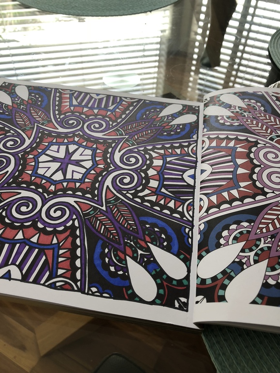 Ещё в те дни я много раскрашивала (есть такие специальные альбомы для раскрасок взрослыми - наверное для взрослых без маленьких детей!) - и даже взяла этот альбом и фломастеры в роддом. Так я думала развлечь себя во время начальной стадии схваток (так забавно сейчас вспоминать как я представляла себе процесс родов - забегая вперёд скажу что в роддоме мне было не до изобразительного искусства!!)