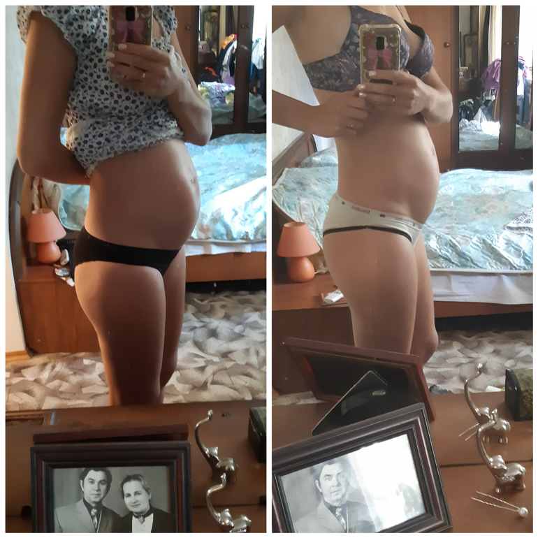 Ну вот через 2 дня нам уже 18 неделек, растем, шевелюшки появились,но что то прямо еле заметные, прямо пиночков нету. Вес это беда, куда он растет не знаю, вешу уже 60кг. а до беременности была 54кг. Пока мы на отдыхе, я плаваю и стараюсь есть больше фруктов. Животик вроде растет, для сравнения фото в 16 недель(справа) и сейчас. Очень жду 2 скрининга и в тоже время очень его боюсь. Всем добра и хорошего настроения!