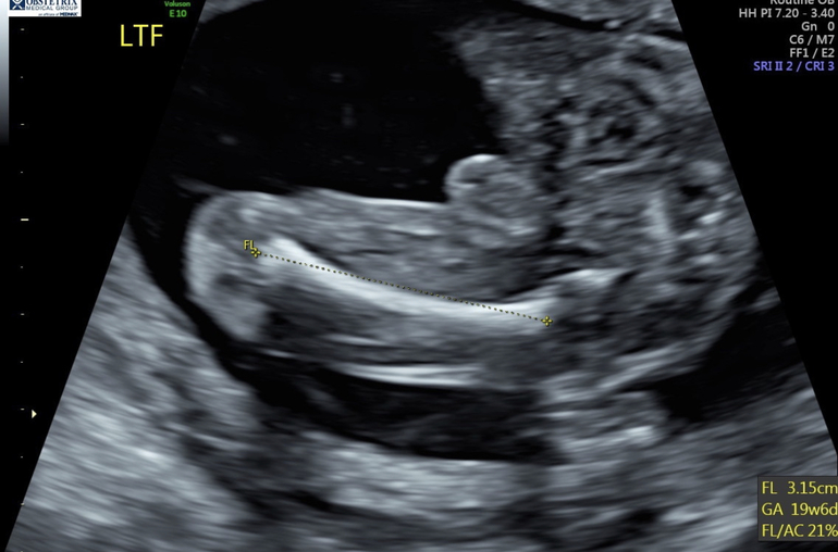 Вот меня смущает, что длина разная и разница такая нехилая. Но длина предплечья тоже разная справа и слева, и видно, что ракурс другой, так же как и ракурс где длина бедра измерялась. Наверное все же схожу ещё на узи через несколько недель.
