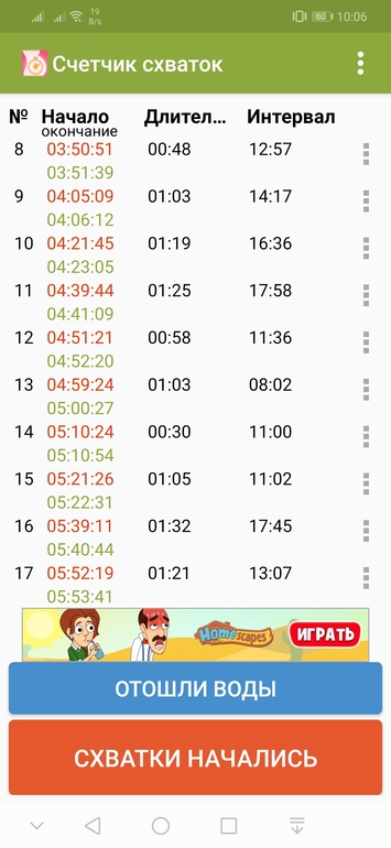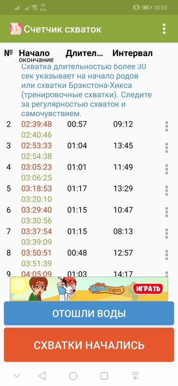 Что-то у вас схватка долго идёт. Они же должны увеличиваться и максимальная минуту идёт... мне кажется это тренировочные, вот если бы были по 30сек то уже можно думать что родовые