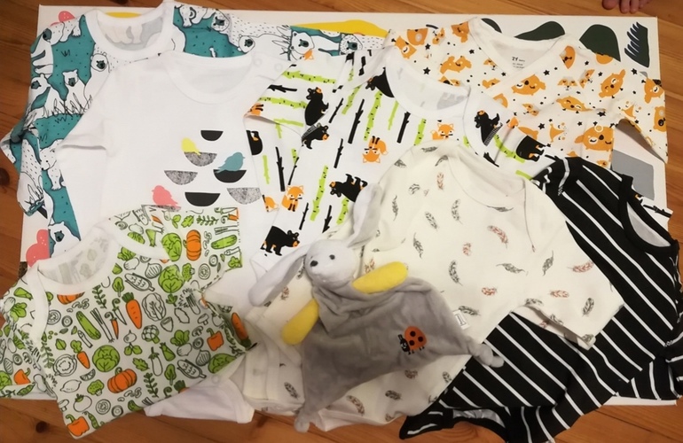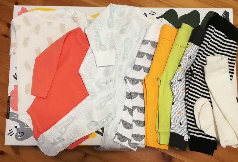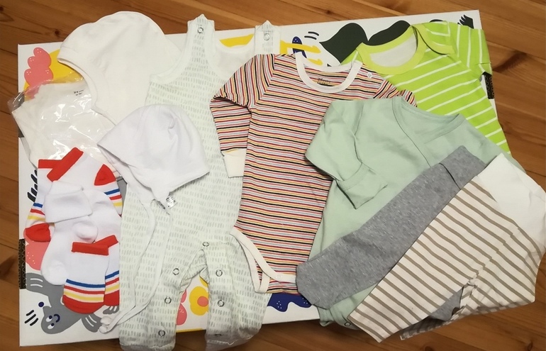 Я и в прошлую беременность, и в эту выбирала коробки, т.к. за денежные выплаты не купить и половины всего, что есть в коробке. В этот раз решила брать, т.к. думала, что у сестры детских вещей не осталось. В прошлый раз я была слегка разочарована расцветками - много было ржаво-рыжего и каких-то блеклых оттенков. В этот раз расцветки просто класс🙂 и качество даже кажется стало лучше. Что ещё меня удивило, что в этот раз посылка пришла супер быстро - подала заявление во вторник, а в следующий вторник посылка была на нашей почте! Так что буду хвастаться😉