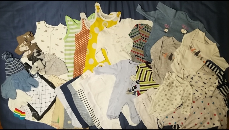 Учитывая, что зимние комбезы из коробки будут велики, взяла еще несколько б/у на 50-62 на разную погоду. И как-то получилось, что незаметно для себя накупила очень много всего, маленького размера в том числе.