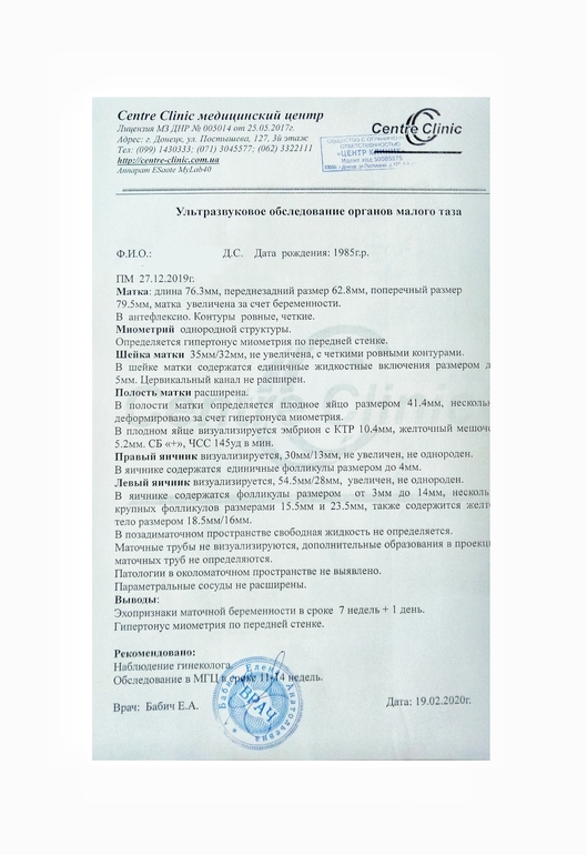 Второе УЗИ 19.02.2020, срок беременности по М 7+6. Второй эмбрион так и не нашли, но ПЯ и желточный мешочек очень большие.