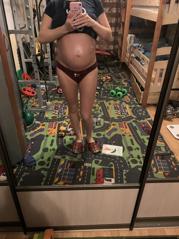Завтра 37 недель. Как сказала Г, если родишь на этой неделе, ребёнок доношен. Постоянно мучают терники, живот то каменеет безболезненно, а вот боль отдаёт в промежность как током... В туалет бегаю по маленькому каждый час, он давит очень вниз мне((( Сколько я так протяну интересно?))) Г сказала ребёнок низко, но все закрыто и шейка хорошая. Поносишь ещё. Все дети рождались раньше: 40.5, 39, 38.3. Четвёртые роды. Но последние больше семи лет назад были. Как бы не было как в первый раз. Тем более что мышцы хорошие. Держат живот. Бандаж не ношу. Ну и фото на память: