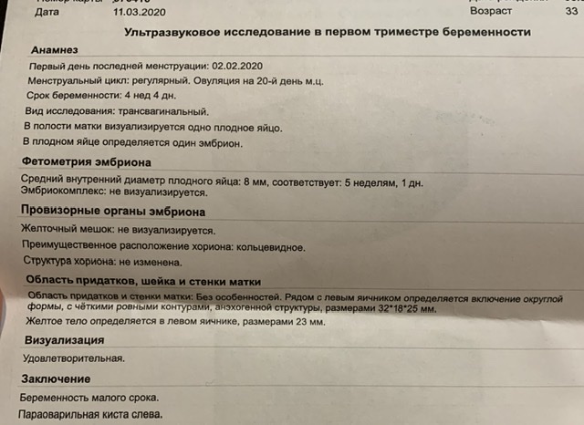 В 5 нед было только ПЯ в обе беременности. Дальше в первую Б больше не ходила, только скрининг. Во вторую Б через 5 дней уже эмбрион и сб.