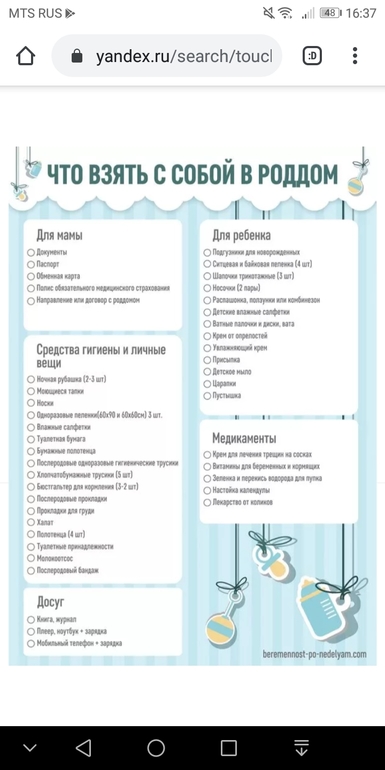 У меня в дневнике есть список вещей и в конце него как раз список из рд где я хочу рожать.