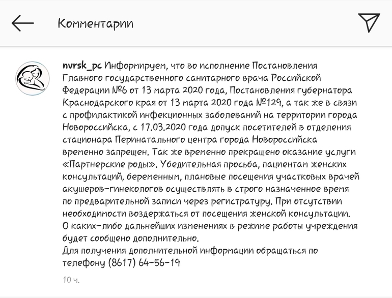 У нас в Ростовской области ни одного случая заражения и при этом в перинатальный центр не пускают никого,кроме посетителей,а сопровождающих отправляют гулять на улицу...это я только что оттуда вернулась, я так понимаю,что партнёрские роды везде временно отменили🙄