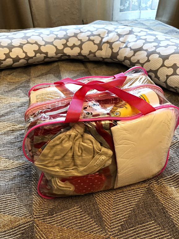 Сумка для дочки- одежка, пеленки, крем под подгузник, памперсы 50 штук, чтоб наверняка)) Моя сумка стоит полупустая- В ней только компрессионные чулки на КС; зарядку и моющиеся тапки ещё успею положить)